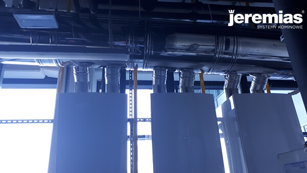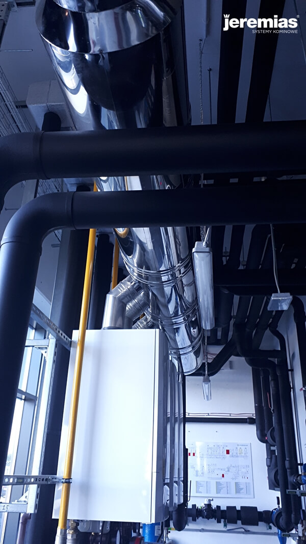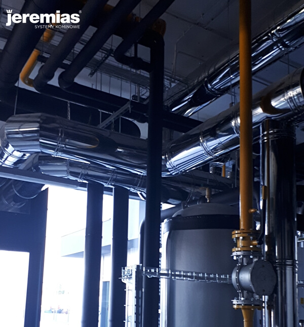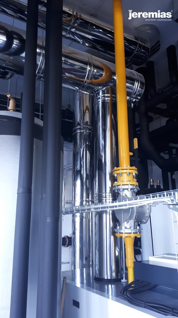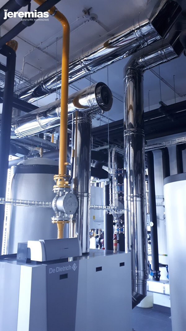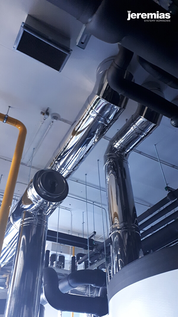o mocy 350 kW. Dwa kominy o średnicy 250 mm.