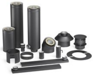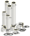 kolana z rewizją 90°, oraz rury odwadniające lub pomiarowe umożliwiające regulację palnika.