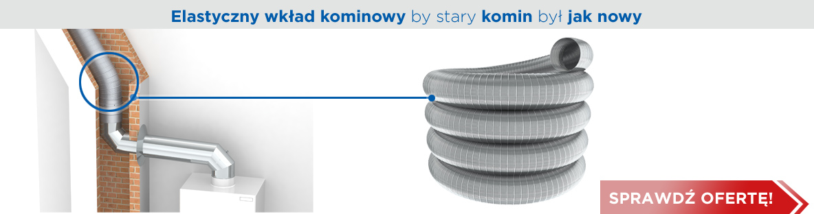 Giętka rura elastyczna pozwala na szybki i prosty montaż wkładu w kanale kominowym, dzięki niej wykonanie odsadzki kominowej nie stanowi problemu.