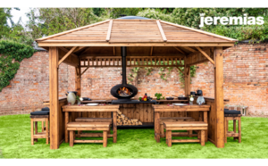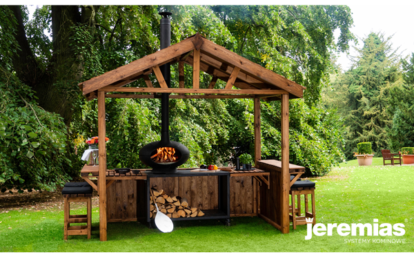 Piec ogrodowy, który może pełnić funkcję grilla jak również pieca do pizzy został wyposażony w rury, kształtki oraz zakończenia dachowe firmy Jeremias.