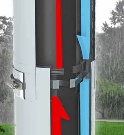 System kominowy dedykowany do kotłów kondensacyjnych ma zupełnie inną konstrukcję, niż kominy stosowane do kotłów z otwartą komorą spalania. Koncentryczny system powietrzno-spalinowy zapewnia jednocześnie odprowadzenie spalin z kotła kondensacyjnego, oraz doprowadzenie powietrza do spalania. W takim układzie elementy składowe rdzenia spalinowego wykonane są z polipropylenu,