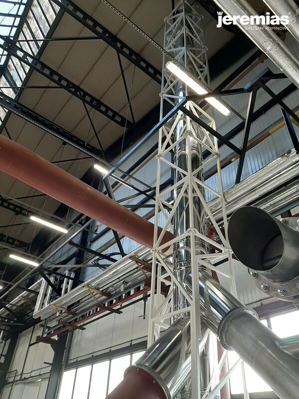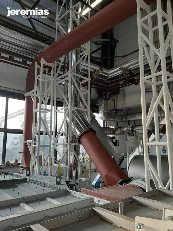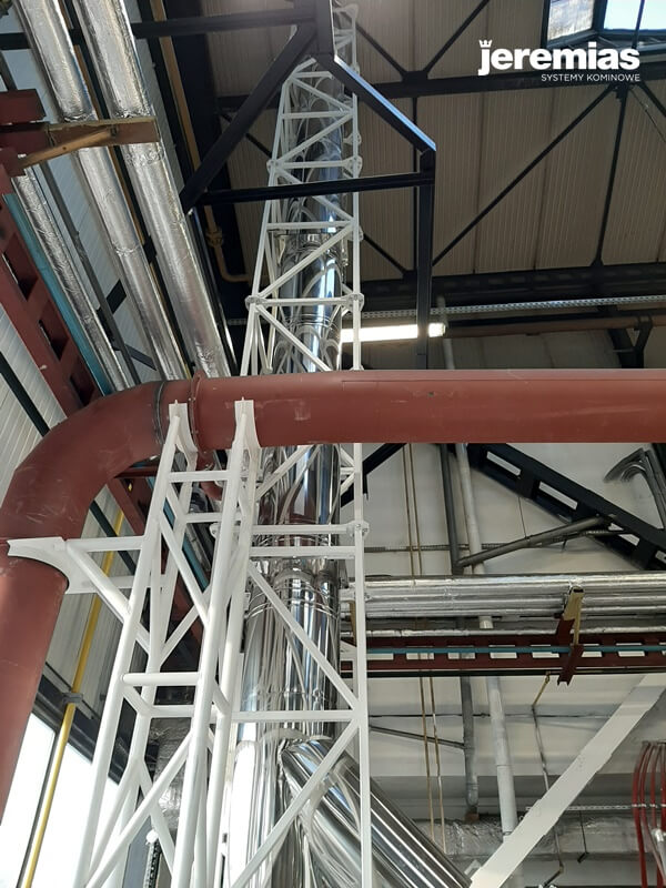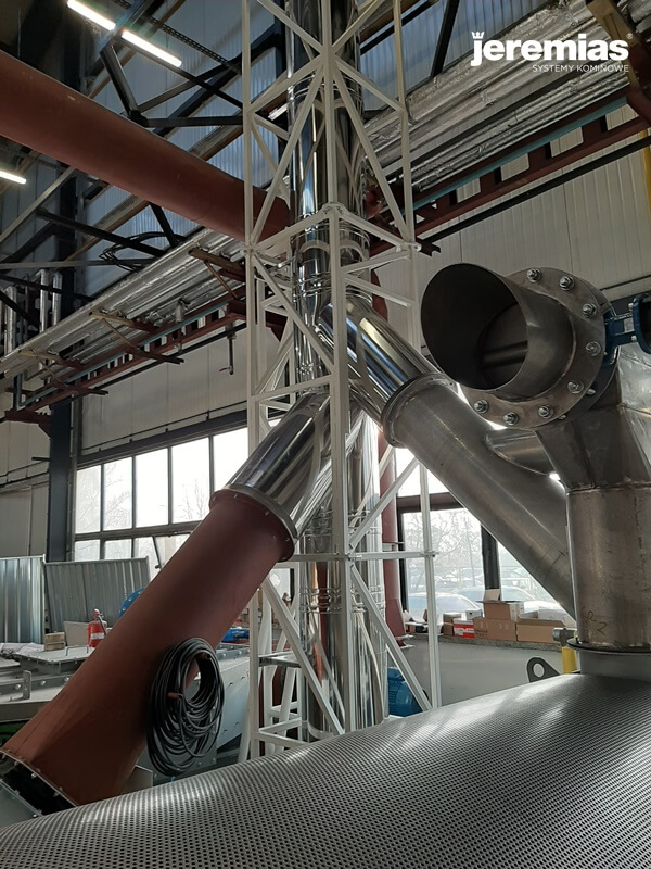 Dla małopolskiego zakładu produkcyjnego firma Jeremias przygotowała rozwiązanie dla odprowadzanie spalin z użyciem systemu DW-KL o średnicy 450 mm.