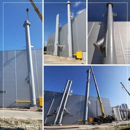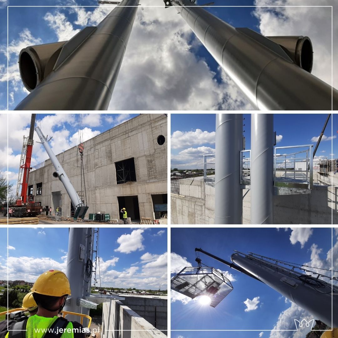 W pierwszym etapie montażu zamontowane zostały dwa kominy stalowe typu FSA o wysokości 20 metrów. Każdy z nich wyposażony został w 1-prętową drabinę od pomostu do szczytu każdego