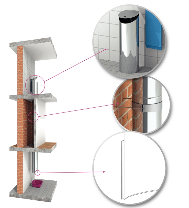 Oprócz zakładów produkcyjnych i własnych biur sprzedaży zapewniamy naszym klientom ponad 100 różnych systemów z certyfikatem CE do zastosowań prywatnych i komercyjnych, a także wolnostojące kominy przemysłowe o średnicach do czterech metrów.