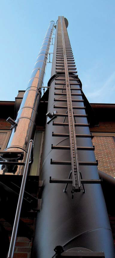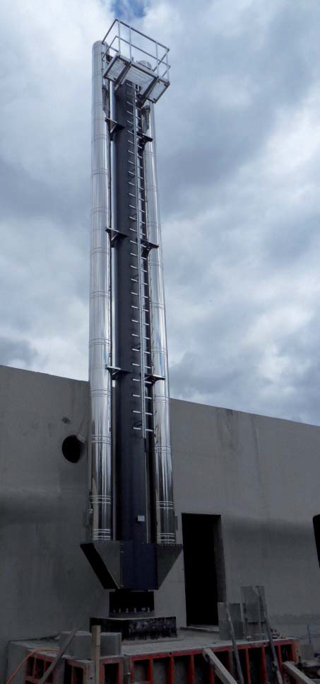 Komin typu FS-RM jest rozwiązaniem umożliwiającym kotwienie do centralnie umieszczonej konstrukcji rurowej kilku izolowanych kominów segmentowych lub systemów FSB. dodatkowo w rurze nośnej która pełni rolę masztu nośnego można zamontować dodatkowe wkłady spalinowe. Komin tego typu może odprowadzać spaliny z wielu urządzeń opalanych różnymi rodzajami paliwa.