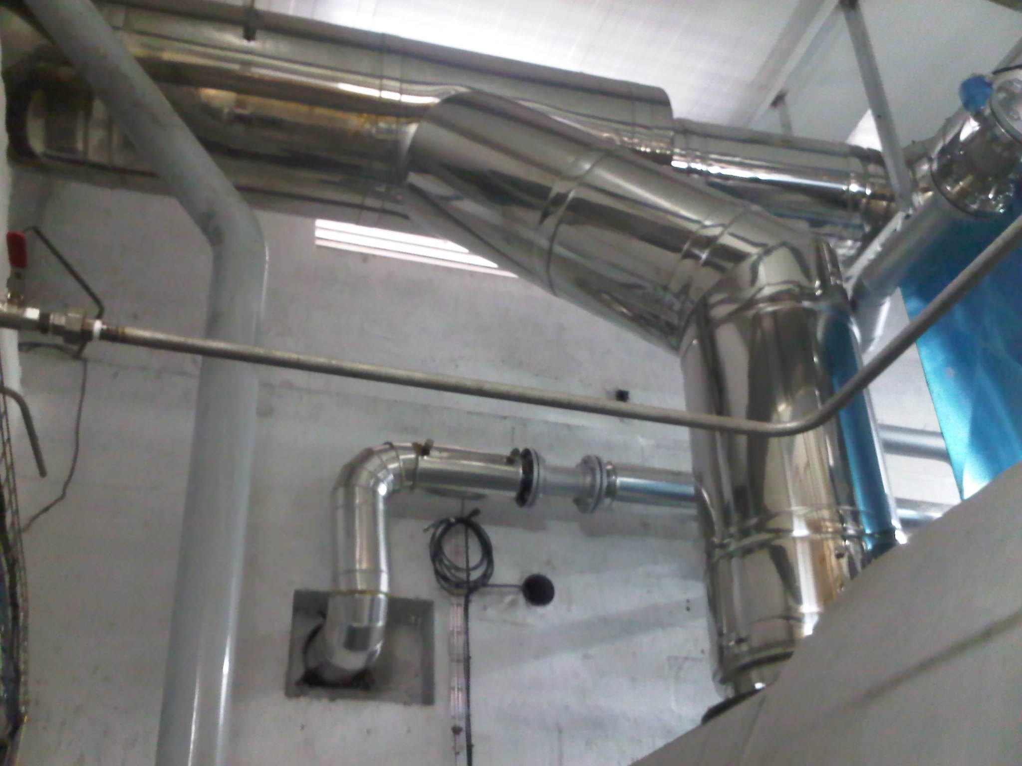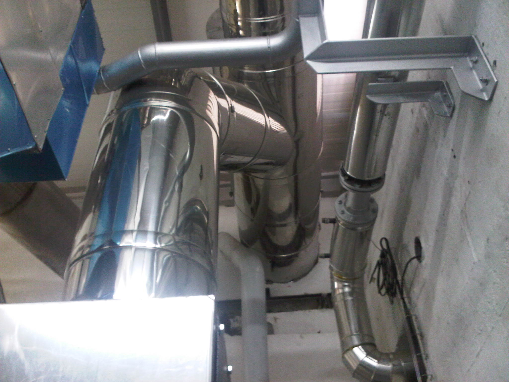 Trzy układy wydechowe, specjalnie opracowane do podwójnego działania instalacji spalinowej (Generator, wyloty kotłów przez ten sam komin)Instalacja dostosowana na zapotrzebowanie klienta.