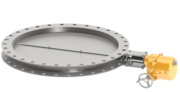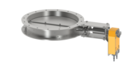 klapa spalinowa z siłownikiem dla układów pracujących w podciśnieniu, stosowane do odcinania połączenia kocioł/komin w dużych instalacjach kotłowych.